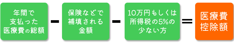 控除額は下記の計算式で算出ができます。控除額は医療費と所得額によって決まります。