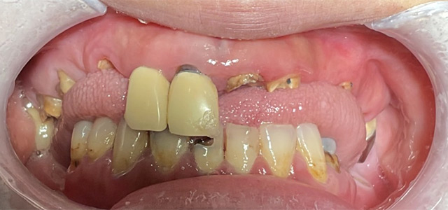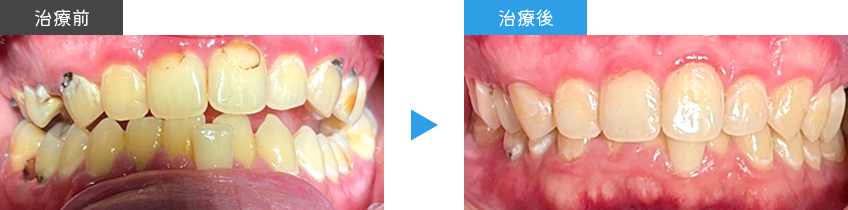 長年虫歯を放置したため包括治療をしたケース。