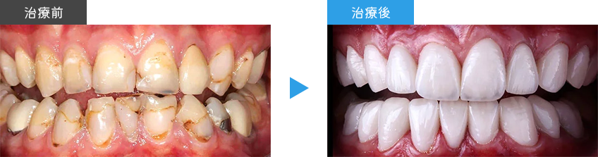 歯がボロボロのコンプレックスを包括治療したケース。